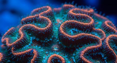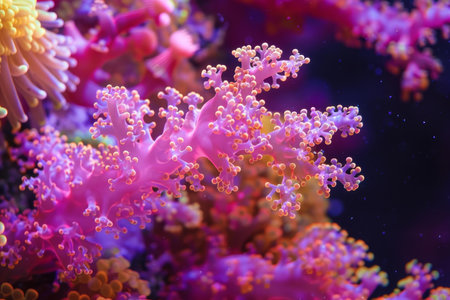 AI Generated. Vibrant coral polyps underwater reef closeup