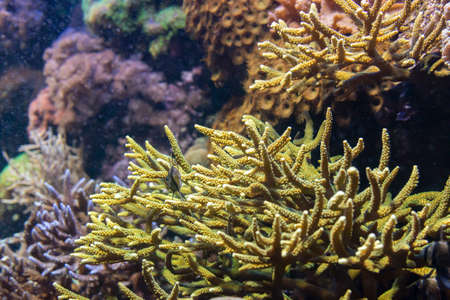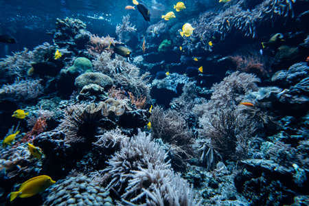 Underwater colorful coral reef and sea life on aquarium tank