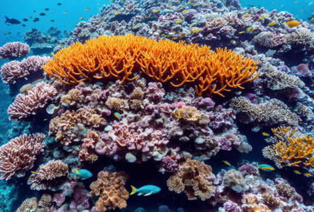 Vibrant coral reef teeming with tropical fish