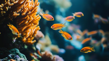 A close-up of a school of small fish swimming near a vibrant coral reef, highlighting their delicate features and the rich underwater ecosystem