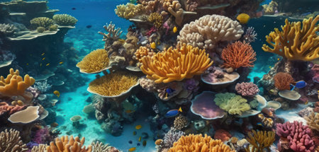 Explore the depths with this captivating coral reef scene. Ideal for educational materials, conservation campaigns, and designs seeking vibrant natural beauty.