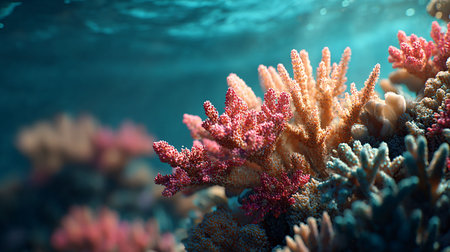 Vibrant Coral Ecosystem. Radiant pink coral branching out in deep blue waters