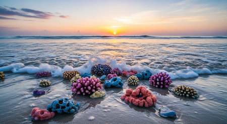 Vibrant coral formations create a stunning underwater landscape rich in color and texture
