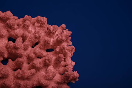 Coral from the ocean reef on a trendy blue background. Color of the year 2019 and 2020, Living Coral and Classic Blue.