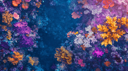 Cinematic colorful coral reef pattern viewed from above showcasing vibrant marine life