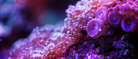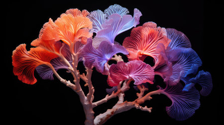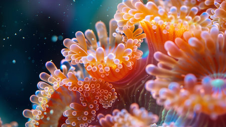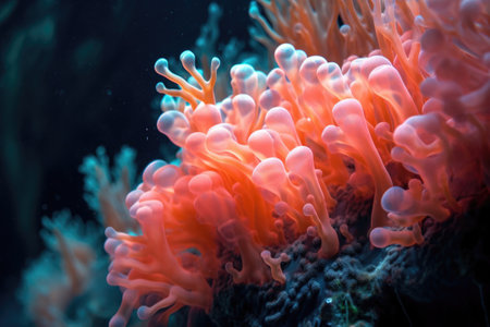 close-up of vibrant bioluminescent deep sea coral, created with generative ai