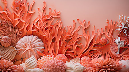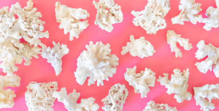 Ocean corals pattern on pink orange background. Flat lay concept.