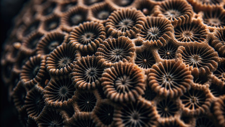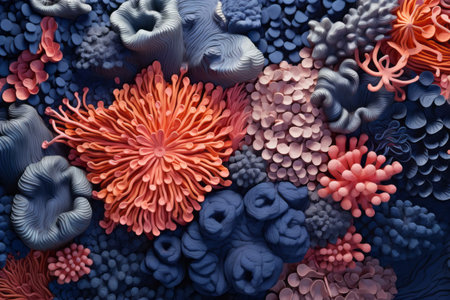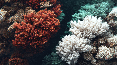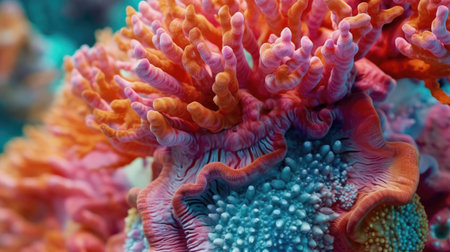 Colorful coral reef displays intricate structures and textures, surrounded by tranquil water, highlighting the diversity and beauty of marine ecosystems, AI generated
