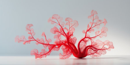 AI Generated. Intricate Red Organic Form with Branching Tendrils