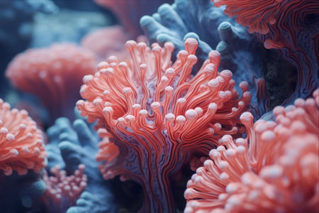 Illustration of pink and blue corals, sea concept, relax, Generated AI