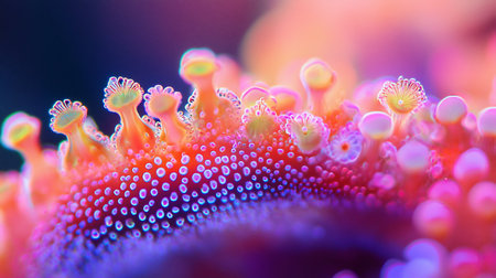 AI Generated. Vibrant coral polyps underwater reef closeup