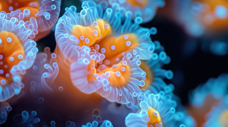 Wonderful aquatic life in ocean seabed. anemones. Coral reef design. Generative AI. Illustration for banner, poster, cover, brochure or presentation.