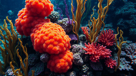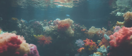 Colorful coral reef underwater, marine life ecosystem background