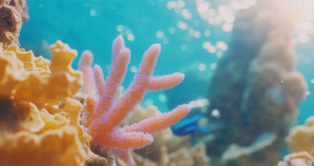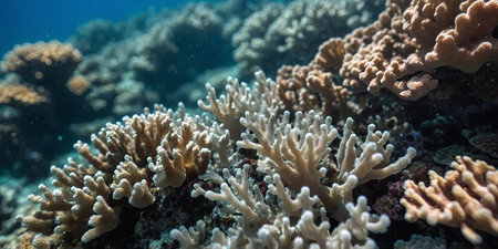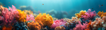 Colorful coral reef underwater, marine life ecosystem background