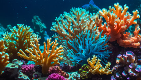 Vibrant neon corals thriving in an underwater ecosystem at night