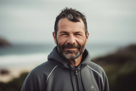 Portrait of a handsome middle-aged man wearing sportswear on a beach