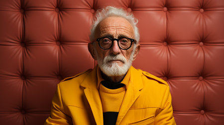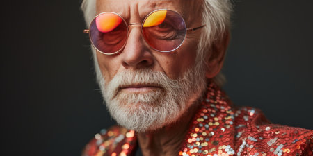 Elderly Man With Rebellious Style, Clad In Disco Attire, Gives Fierce Look. Сoncept Fashion Forward Granny, Vintage Glam, Bold Grandma, Stylish Seniors.