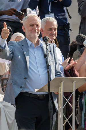 London, United Kingdom, 13th July 2018: Jeremy Corbyn MP, leader of the Labour party speaks at an anti trump rally in central London