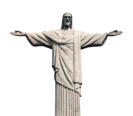 Christ the Redeemer statue, Corcovado, Rio de Janeiro, Brazil. Isolated on white