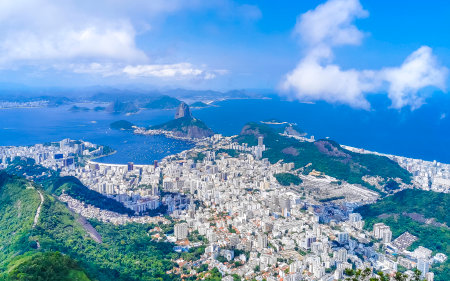 Aerial panoramic view of Rio de Janeiro from Corcovado, Brazil, South America