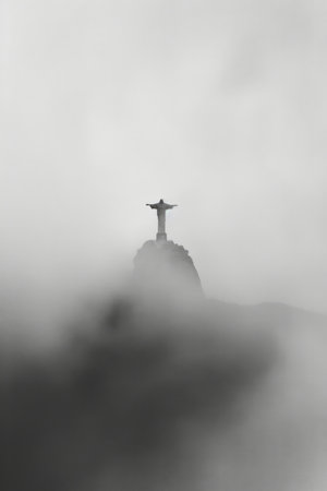 Majestic sunrise over a sea of clouds with the iconic Christ the Redeemer statue, symbolizing faith and tranquility.