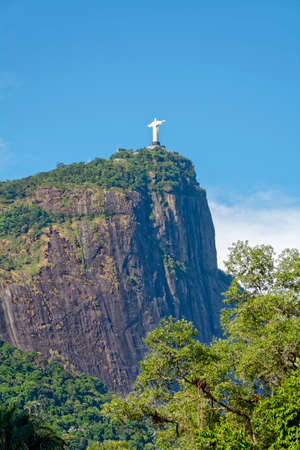 Cristo Redentor seen through the tropical vegetation of Rio de Janeiro