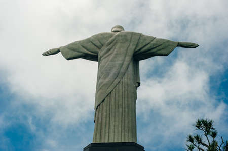 Rio de Janeiro, Brazil - Nov 2, 2017: The back of Christ the Redeemer Statue and Corcovado Mountain - Rio de Janeiro, Brazil