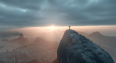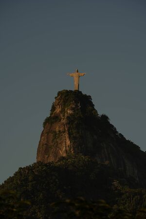 Christ Redeemer statue at Rio de Janeiro abstract shot at sunset time
