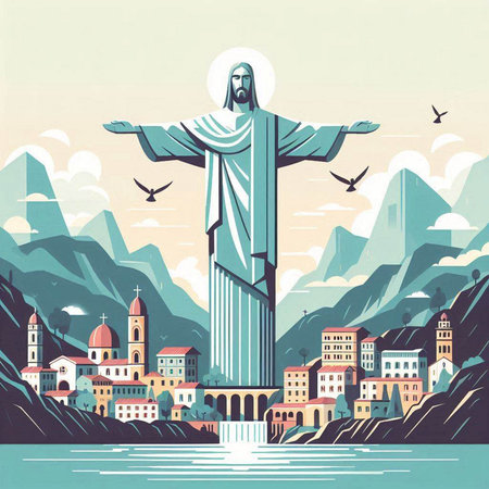 Christ the Redeemer overseeing the bustling streets of Rio de Janeiro ultra realistic illustration - Generative AI.