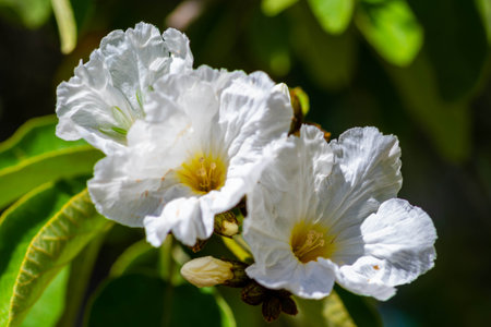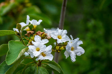 Anacahuita (also known as Cordia Boissieri, White Cordia, Mexican olive, Texas wild olive) flowering in early summer