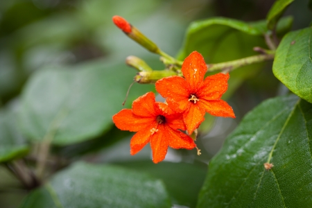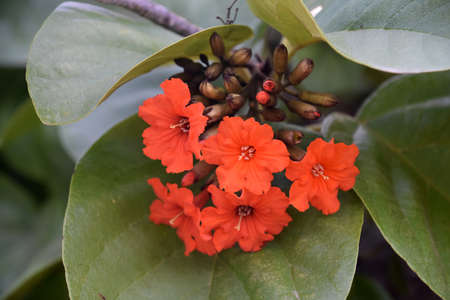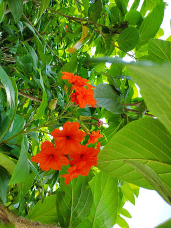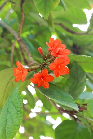 Beautiful Cordia sebestena in the garden, orange flower