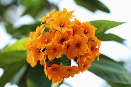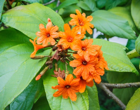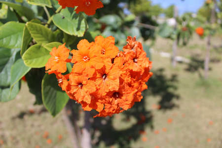 Orange flower , Cordia,Geiger tree ( Cordia sebestena L.) in the garden