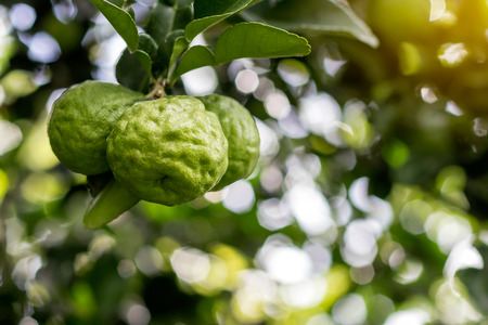 Bergamot, Fresh green bergamot fruit hanging from branch. bergamot tree garden and healthy food concept, group of bergamot,Bergamot medicinal plants with many
