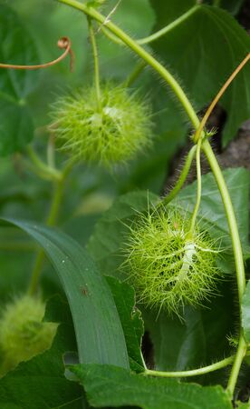 Fetid passionflower (Passiflora foetida Linn) on the vine on natural background