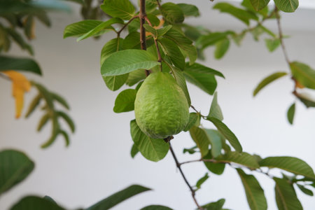 Fresh guava fruit on the tree. Guava is a fruit of the guava family.