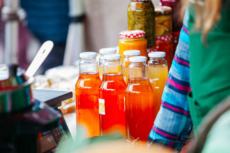 cocktail jars with orange juic in the food market