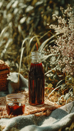 Kombucha tea with fruits in a vintage bottle with a kraft label
