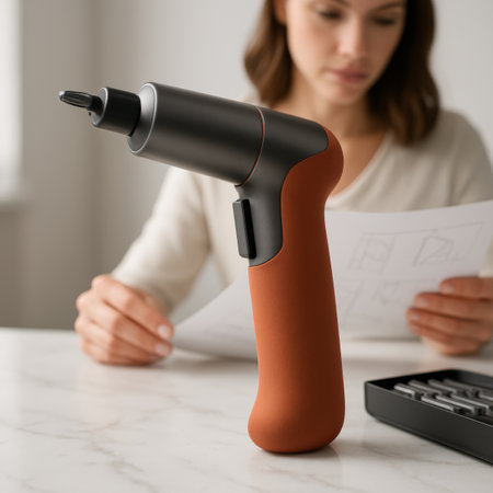A stunning close-up shot of an electric drill showcasing its sleek design and robust construction, ideal for projects in DIY, woodworking, or construction.