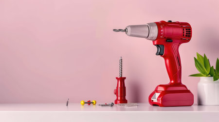 This image features a red cordless drill placed on a vibrant red background. It showcases the tool's design and functionality, making it ideal for home improvement and DIY projects. ai generated.