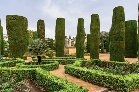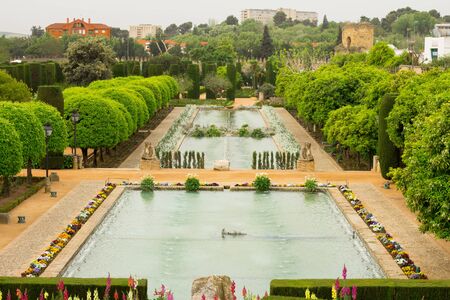 View of the gardens of the Alcazar of the Christian Monarchs, Alcazar de los Reyes Cristianos in Cordoba, Andalusia, Spain
