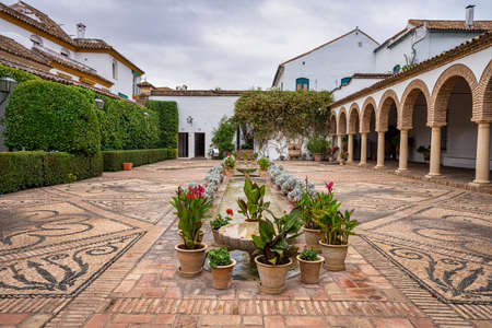 Cordoba, Spain - November 03, 2019: Courtyard garden of Viana Palace in Cordoba, Andalusia. Built in XV century. Viana Palace is a tourist attraction known for its 12 magnificent patios and gardens.
