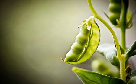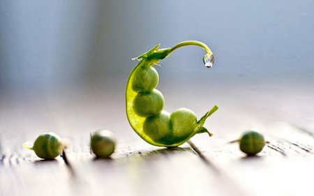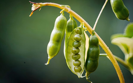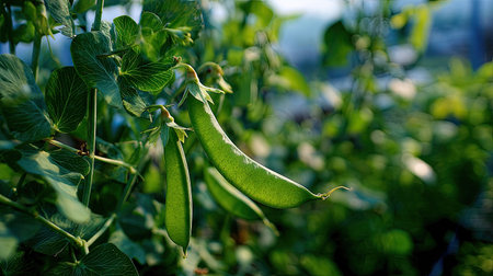 Floating in a serene green space, these vibrant pea pods create a dynamic and harmonious visual. Capturing a sense of freshness and natural beauty, this Generated AI image evokes tranquility