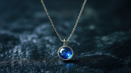 A stunning close-up of an elegant blue gemstone pendant necklace resting on a textured surface, showcasing intricate details and vibrant colors.