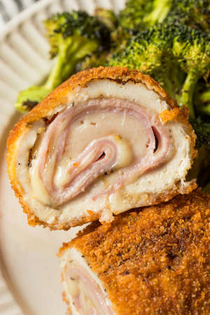 Homemade Breaded Chicken Cordon Bleu with Cheese and Ham