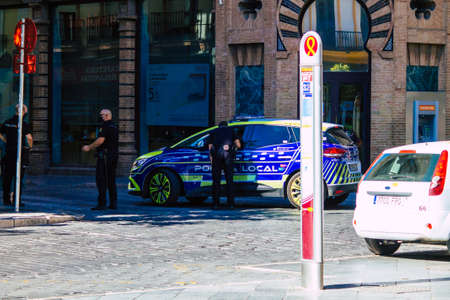 Seville Spain July 05, 2021 Local police officer in the streets of Seville, an emblematic city and the capital of the region of Andalusia, in the south of Spain