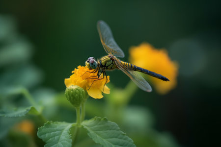 dragonfly on a yellow flower in the nature. macro photography.