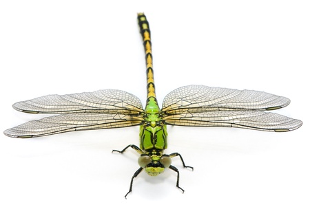 Ophiogomphus cecilia. Green Snaketail dragonfly on a white background.