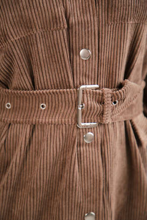 A close-up image of a brown corduroy jacket, showing the texture of the fabric and the way the light reflects off of it.
