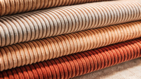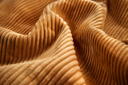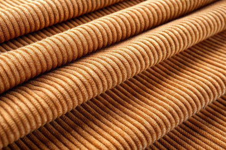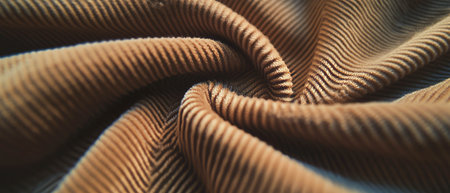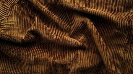 Detailed view of brown corduroy fabric, highlighting its ribbed texture and warm, cozy feel. Generative AI