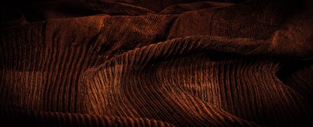Rumpled orange corduroy fabric texture. Crumpled Background